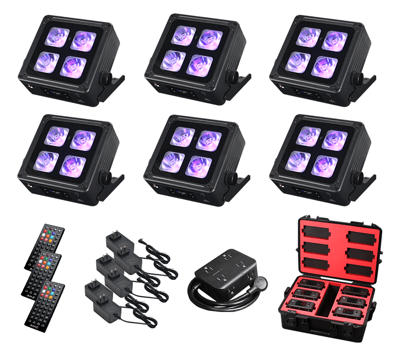 • Each Unit: 60W (4 x 15W) RGBWA+UV LEDs + IP65 Outdoor Rated
